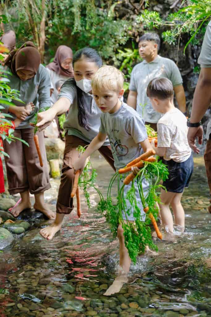 Salah satu aktivitas yang menjadi sorotan dalam kegiatan ini adalah sesi mencari wortel untuk kelinci yang dilakukan di area Aviary. Dalam aktivitas ini, anak-anak diajak untuk mengeksplorasi lingkungan alami secara langsung, mulai dari berjalan di area terbuka, mengenal elemen alam, hingga berinteraksi dengan hewan. Kegiatan ini tidak hanya memberikan pengalaman bermain yang menyenangkan, tetapi juga dirancang sebagai bagian dari stimulasi terapi, khususnya dalam melatih kemampuan sensorik dan auditory processing anak.
